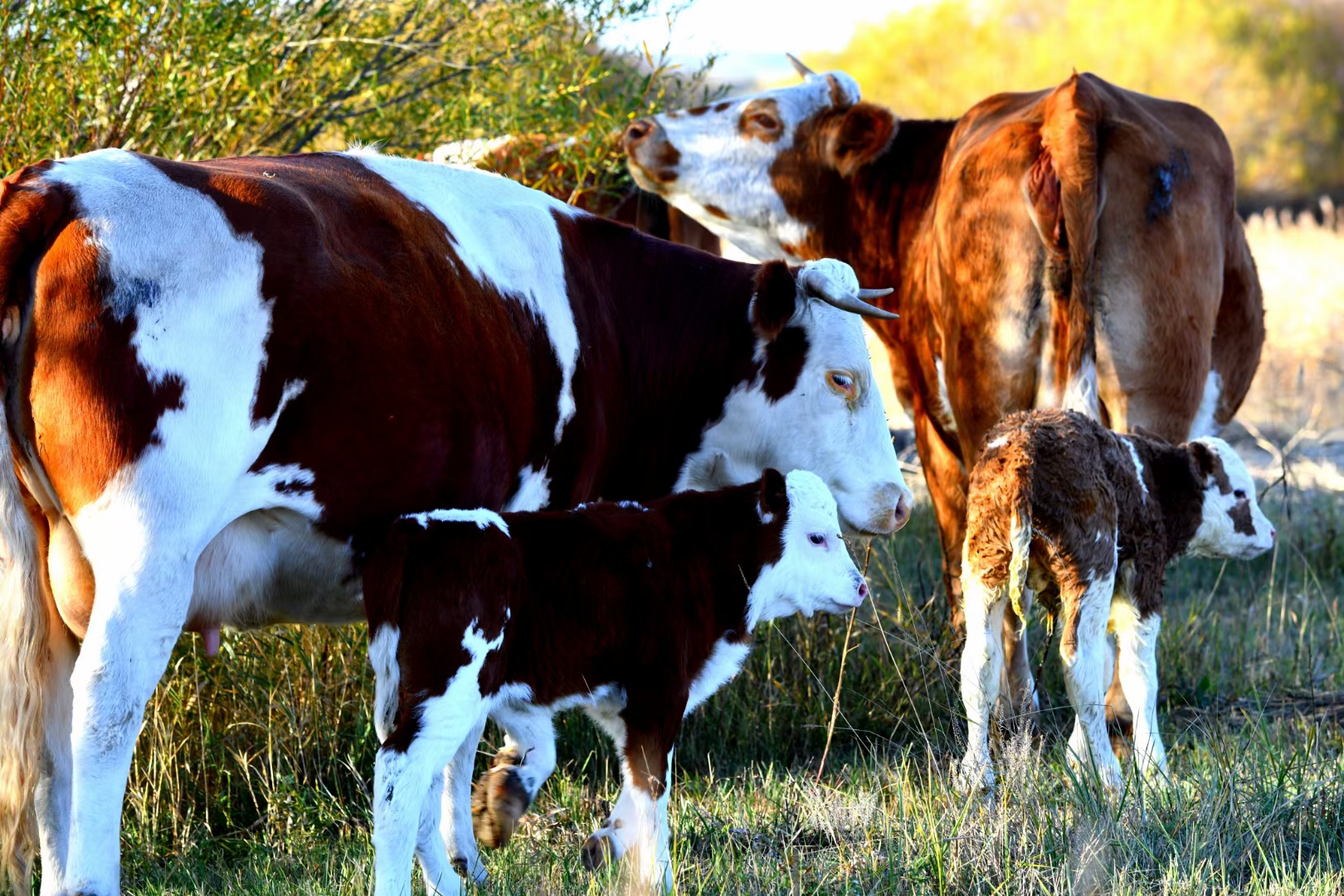 有在牧场上悠闲踱步的小牛,有在草丛里奔跑跳跃的狍子,有在雪地里蜷缩的兔狲,有哈气成霜的冬季放牧人,也有草原上的晨光初起、夕阳西下……