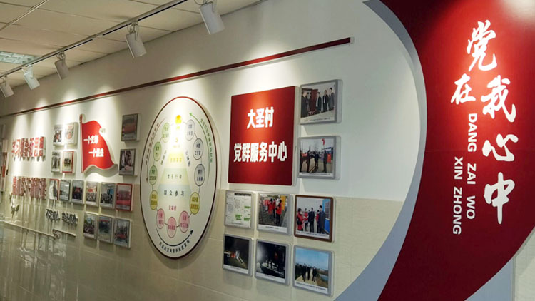 参观党群服务中心和“芹心工作室”,介绍大圣村党建引领乡村振兴的具体实践。
